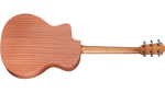 Gitaren har Taylors populære Grand Auditorium-kropp med cutaway, kjent for sin allsidighet og komfortable størrelse. Lokk i solid torrefiert gran gir klarhet, projeksjon og en moden klang, mens bunn og sider i lagdelt afrikansk sapele gir styrke og stabilitet uten å kompromisse med tonen.