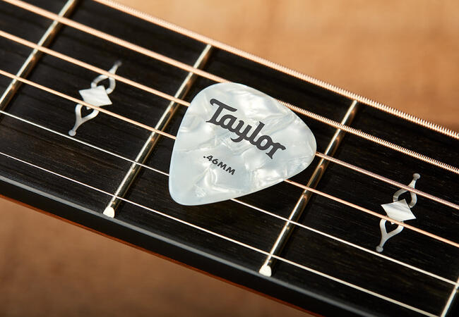 Taylor Celluloid Picks are available in Classic Shell, White Pearl and Abalone color patterns in the classic 351 shape. Perfect for players who love the traditional, familiar tone and feel of a classic pick, they are available in .46mm, .71mm, .96mm and 1.21mm gauge sizes. Made in the USA.