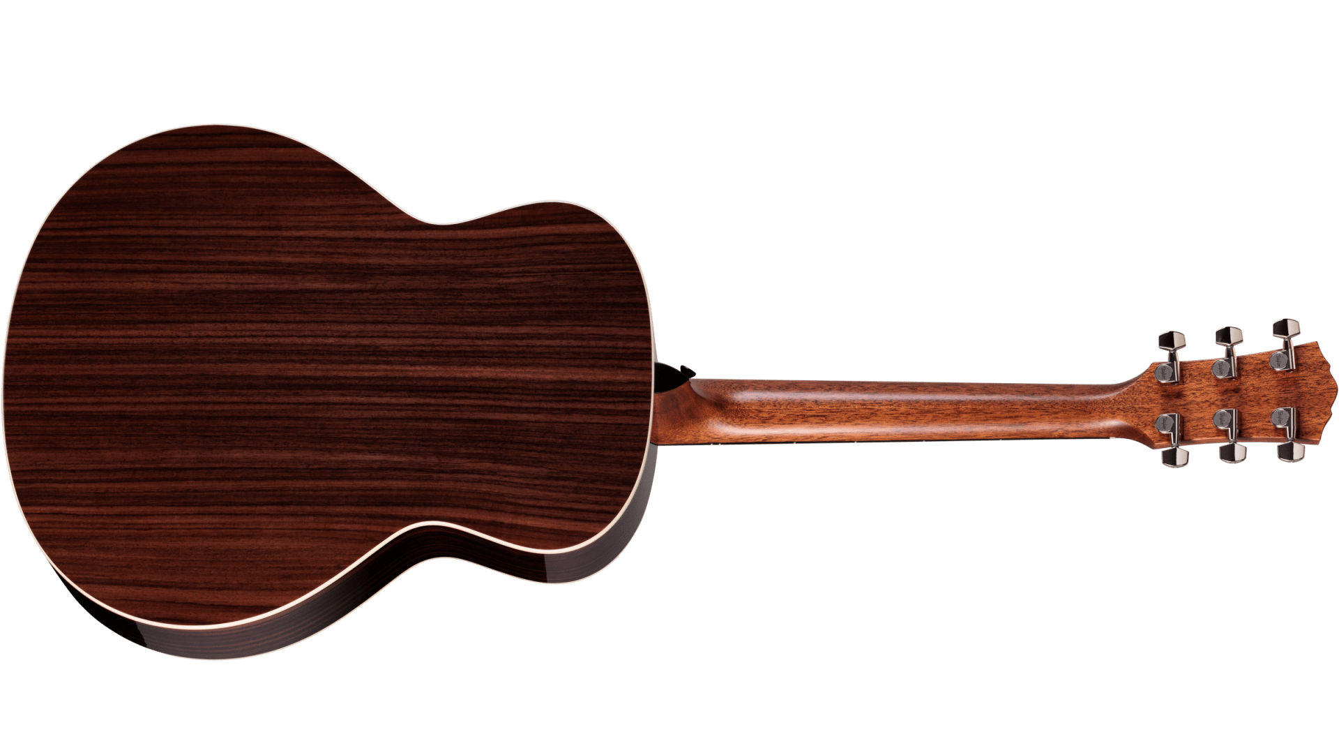 Med sin dristige blacktop-finish og varme, åpne klang, er Taylor Gold Label 714e Blacktop en modell som kombinerer klassisk akustisk dybde med moderne spillbarhet. Kroppen i heltre indisk rosentre gir resonante basser og rike overtoner, mens det torrefied Sitka granlokket tilfører moden klangkarakter og ekstra projeksjon. Den større Super Auditorium-kroppen, med bredere nedre bue enn Grand Auditorium, gir et åpent og blomstrende lydbilde med varme diskanttoner og solid fundament i bunnen.