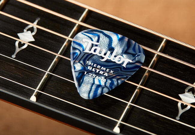 Taylor Premium Thermex™ Blue Swirl Picks are the most popular guitar picks from the Taylor DarkTone™ Series, made with an exclusive thermo-bonding process that helps them produce a warmer, more articulate guitar tone. These picks are available in the classic 351 shape and are precision-cut in 1.0mm, 1.25mm and 1.5mm sizes. Made in the USA.