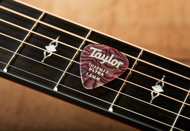 Taylor Premium Thermex™ Ultra Ruby Swirl Picks are the most popular guitar picks from the Taylor DarkTone™ Series, made with an exclusive thermo-bonding process that helps them produce a warmer, more articulate guitar tone. These picks are available in the classic 351 shape and are precision-cut in 1.0mm, 1.25mm and 1.5mm sizes. Made in the USA. Model #70710