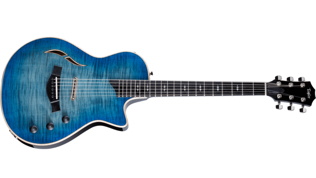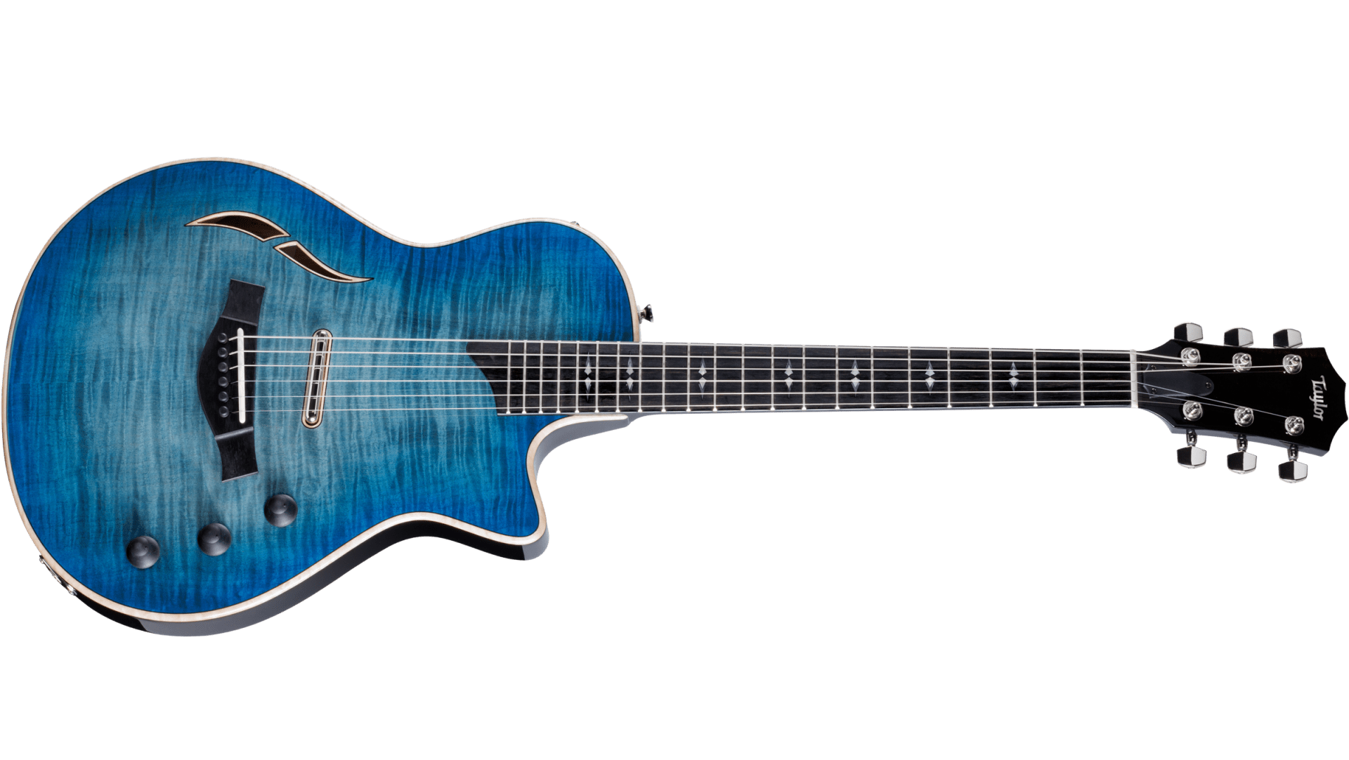 Den nyutviklede Taylor T5z Pro i Harbor Blue kombinerer elektrisk og akustisk lyd i en elegant og ergonomisk design.