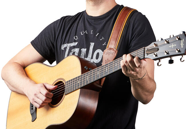 The Taylor Century Leather Guitar Strap emphasizes comfort alongside a classic aesthetic appeal. Taylor logo and our Century motif, making it a great match for any 500 Series Taylor guitar. At 2.5" wide, the Taylor Century strap provides the perfect balance of comfort and support. Made in the USA.