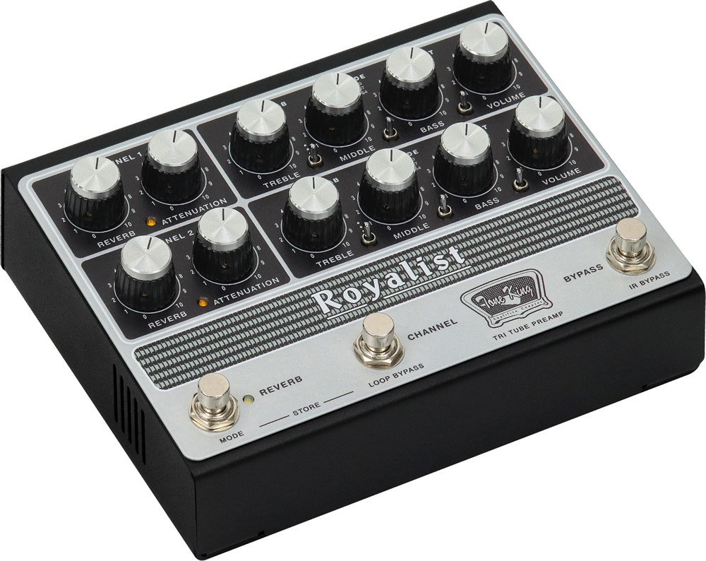 Tone King Royalist Preamp bringer lyden og følelsen fra Royalist MKIII-forsterkeren til et pedalbordvennlig format tilpasset moderne scene- og studiobruk. Bygget rundt tre 12AX7-rør som drives med full høyspenning, leverer den anslagsfølsomhet, dynamisk respons og harmonisk rikdom slik man forventer fra en ekte rørforsterker.