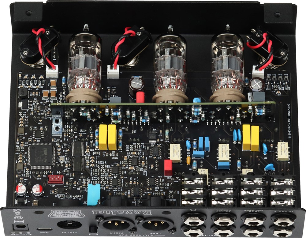 Med Tone King Editor-programvaren (via USB-C) kan du administrere IR-er, tilordne parametere, finjustere filtre og lagre opptil 128 MIDI-programmerbare presets. Royalist fungerer både som selvstendig løsning og integrert del av større rigg via FX-loop, MIDI og balanserte XLR-utganger.