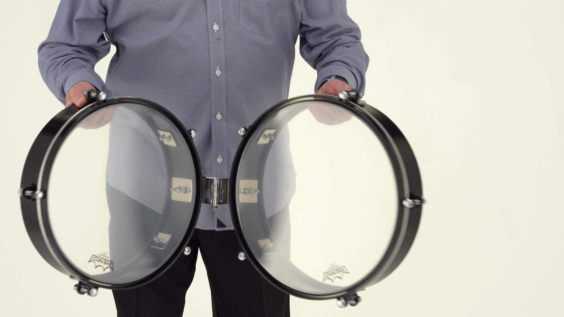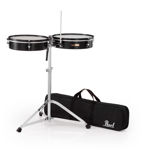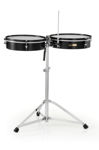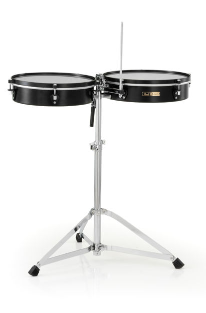 The Travel series of Congas and Bongos has a new sibling - the Travel Timbales. The 14" and 15” steel shell timbales are professional size in diameter but only 4” deep. The drums are connected by a hinge that marries to the Quick Release stand. The custom hinge allows the drums to be folded together into the size of one standard depth timbale for easy storage and transportation. The Travel Timbales come with and a single braced stand that includes an 11.25" adjustable accessory post. The accessory post has 6 positions that allow cowbells and blocks to be placed the perfect distance from the player. The steel shells feature a black lacquer finish and USA Remo clear Ambassadors heads for a truly professional sounding instrument. A soft carrying case for the stand is also included. •14" and 15" steel timbales •4" deep for easy storage and transport •Single braced Quick Release stand and carrying case included •Adjustable accessory post included •Black lacquer finish •Remo Clear Ambassador Heads