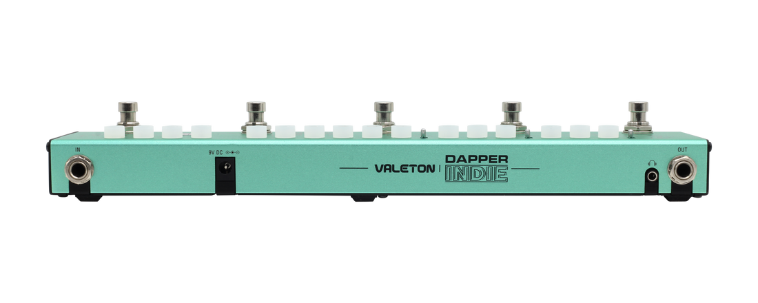 Valeton VES-5 Dapper Indie er et kompakt gitar-multieffekt-pedalboard utviklet med særlig fokus på indie-, ambient- og alternativ rock. Pedalen samler de mest brukte gitar-effektene i én enkel og oversiktlig enhet, og er laget for gitarister som ønsker stor klanglig fleksibilitet uten komplisert oppsett.