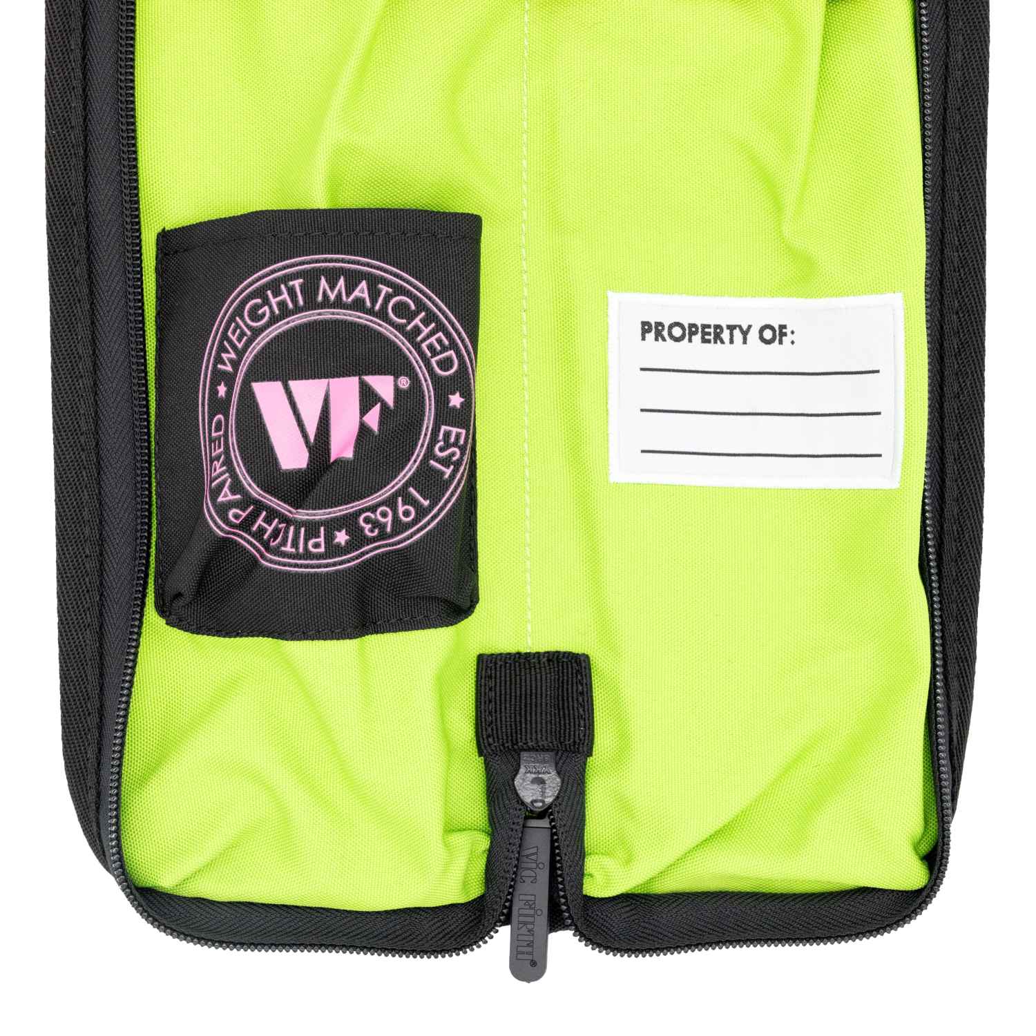 Stikkebag i fin neonfinish for 5 par stikker.Superfleksibel stikkebag for ca 5 par slagredskaper, kan variere litt avhengig av modell og størrelse.Vesken er laget av vannavstøtende og slitesterkt nylonstoff. Vesken er utstyrt med bærehåndtak, to stropper med kroker for å kunne henge den på gulvtammen, en liten lomme for småtilbehør & en hempe til å sette en trommenøkkel i.Vesken er så liten og fleksibel at den også fungerer å feste den rundt skarptrommen hvis du vil ha slagredskapene veldig nærme under spilling.Trommestikker, visper og annet tilbehør er ikke inkludert...