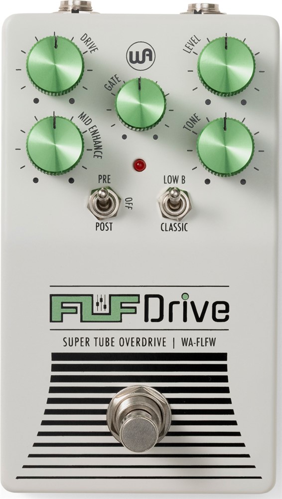 Fluff Drive kombinerer modifisert low boost, valgbar plassering av mid-enhance før eller etter gain-trinnet, samt en variabel noise gate. Dette gir fleksibilitet til å forme signalet presist, enten målet er å stramme opp en rørforsterker eller legge til definert og aggressiv overdrive i et high-gain-oppsett. Noise gate-funksjonen bidrar til redusert støy i krevende signalveier.