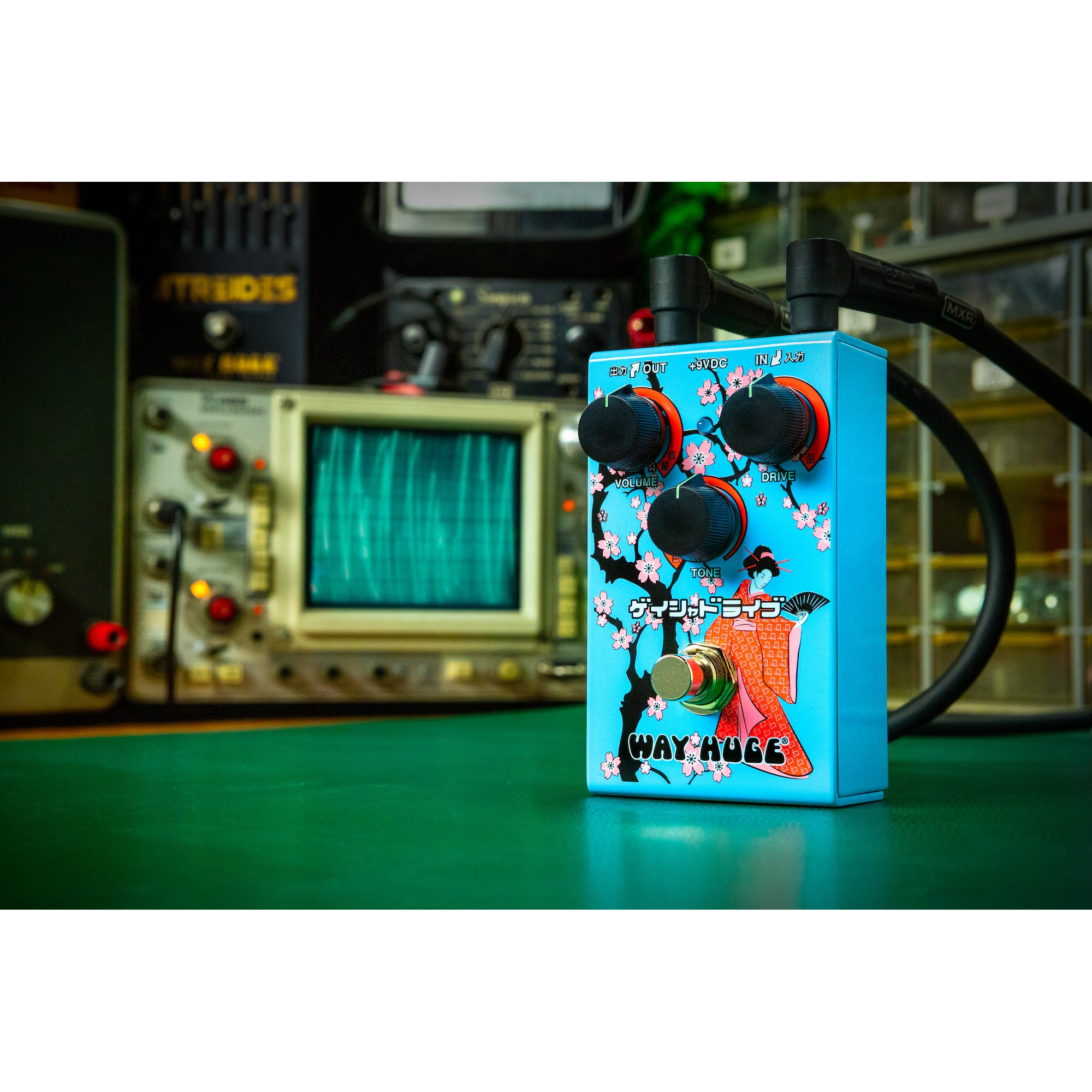 Geisha Drive reagerer tydelig på spillestil og volumkontrollen på gitaren, slik at du kan bevege deg fra mild overdrive til kraftigere distortion uten å endre pedalinnstillingene. Med lave Drive-innstillinger får du varme og myke overdriveklanger, mens høyere innstillinger gir tykkere, røraktig overdrive. Ved maksimal Drive kan pedalen levere mer aggressiv distortion.