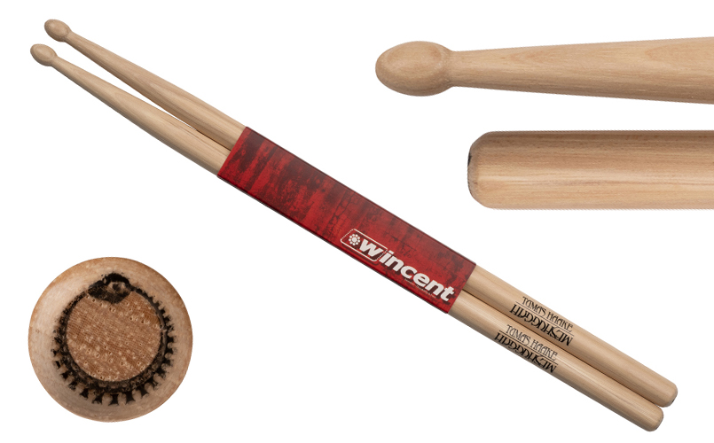 Massive and made for Metal, Meshuggah drummer Tomas Haake designed his Signature Wincent drumsticks to rock the line between balance, power, and speed. Sporting a longer profile and extended shoulder taper, its enlarged Bead tip strikes with crushing clarity and stays crisp under extended heavy play. Butt-End Branded with the Meshuggah Luminokaya ring, each stick is stone-ground in Sweden from choice American Hickory, and Wincent's Unique Wax Protection (UWP) treatment assures better grip, increased durability and extended playing lifetime.