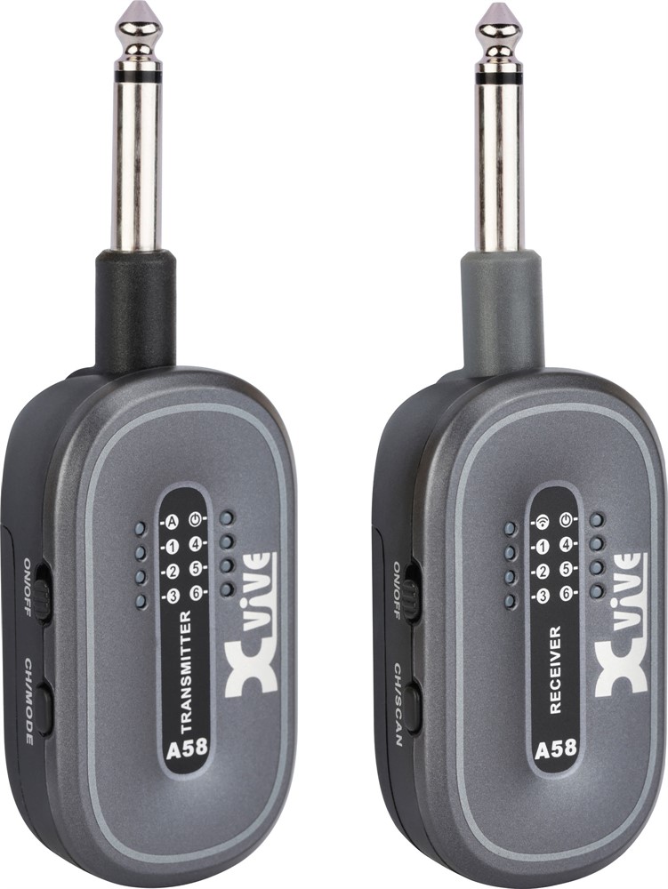 Xvive A58 er et digitalt trådløst system for gitar og bass som opererer på 5,8 GHz-båndet, tilgjengelig for bruk over hele verden. Systemet har innebygd Scan-funksjon som automatisk finner den beste kanalen der du er, og en bryter for aktiv/passiv gitar eller bass. Med en rekkevidde på opptil 30 meter og batteritid på 5 timer takler du selv de lengste konsertene.