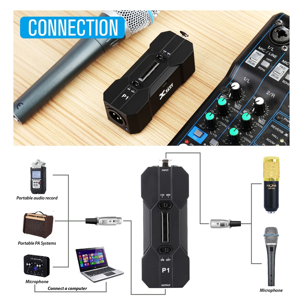 Xvive P1 er en kompakt og portabel fantomstrømforsyning med lavt støynivå, ideell for bruk med kondensatormikrofoner og annet utstyr som krever 12V eller 48V fantomkraft. Enheten drives av et innebygd oppladbart batteri og gir støysvak og stabil strøm i både studio og felt.