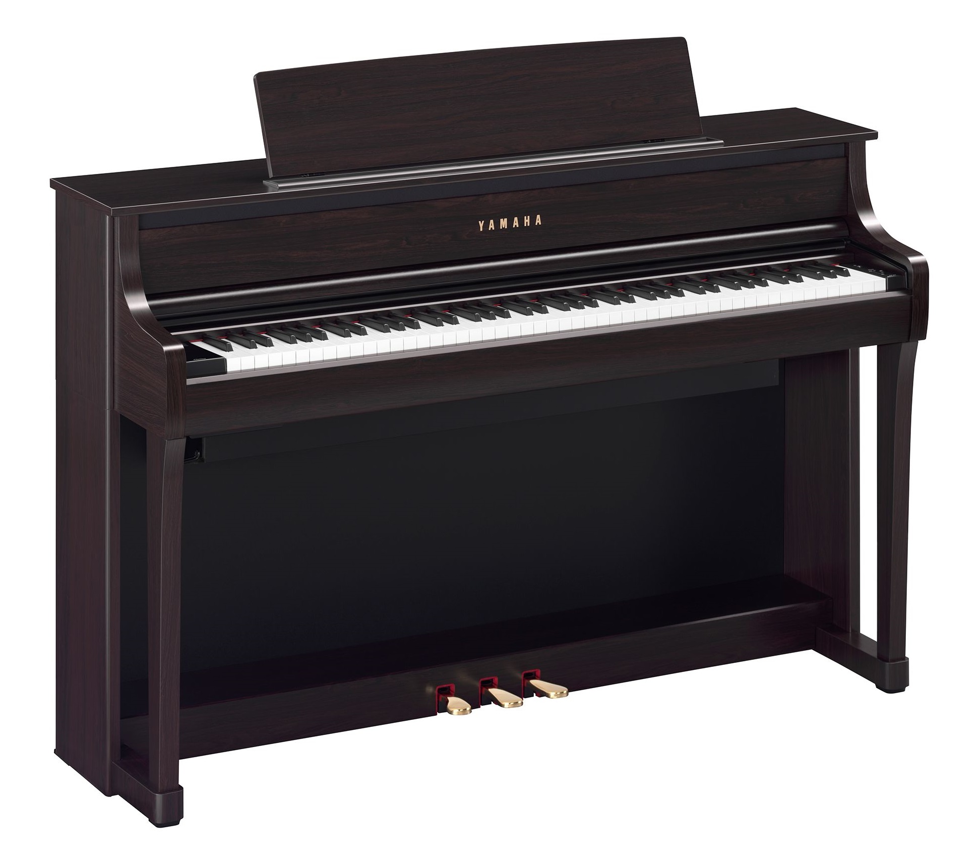 Yamaha CLP-875 i mørkt rosentre - flygel-lignende resonans og bredt uttrykk med GrandTouch-tangenter og presise pedaler.