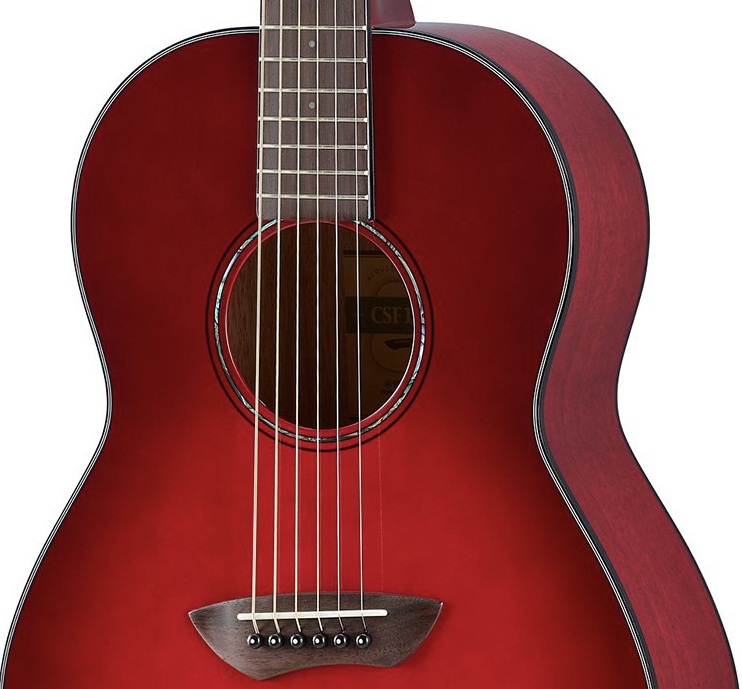 The CSF1M, our compact folk guitar, features a solid sitka spruce top with newly-designed scalloped bracing and mahogany back and sides. Piezo pickup ensures solid plugged-in performance.