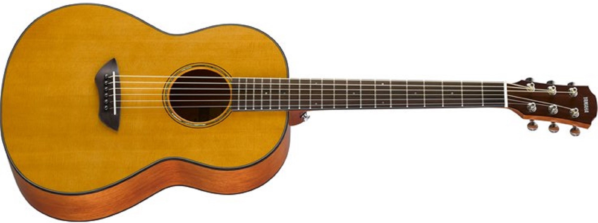 CSF1M Acoustic Guitar In Vintage Natural finish. The CSF, compact folk guitar, features solid sitka spruce top with newly designed scalloped bracing and mahogany back and sides. Piezo pickup ensures solid plugged-in performance.