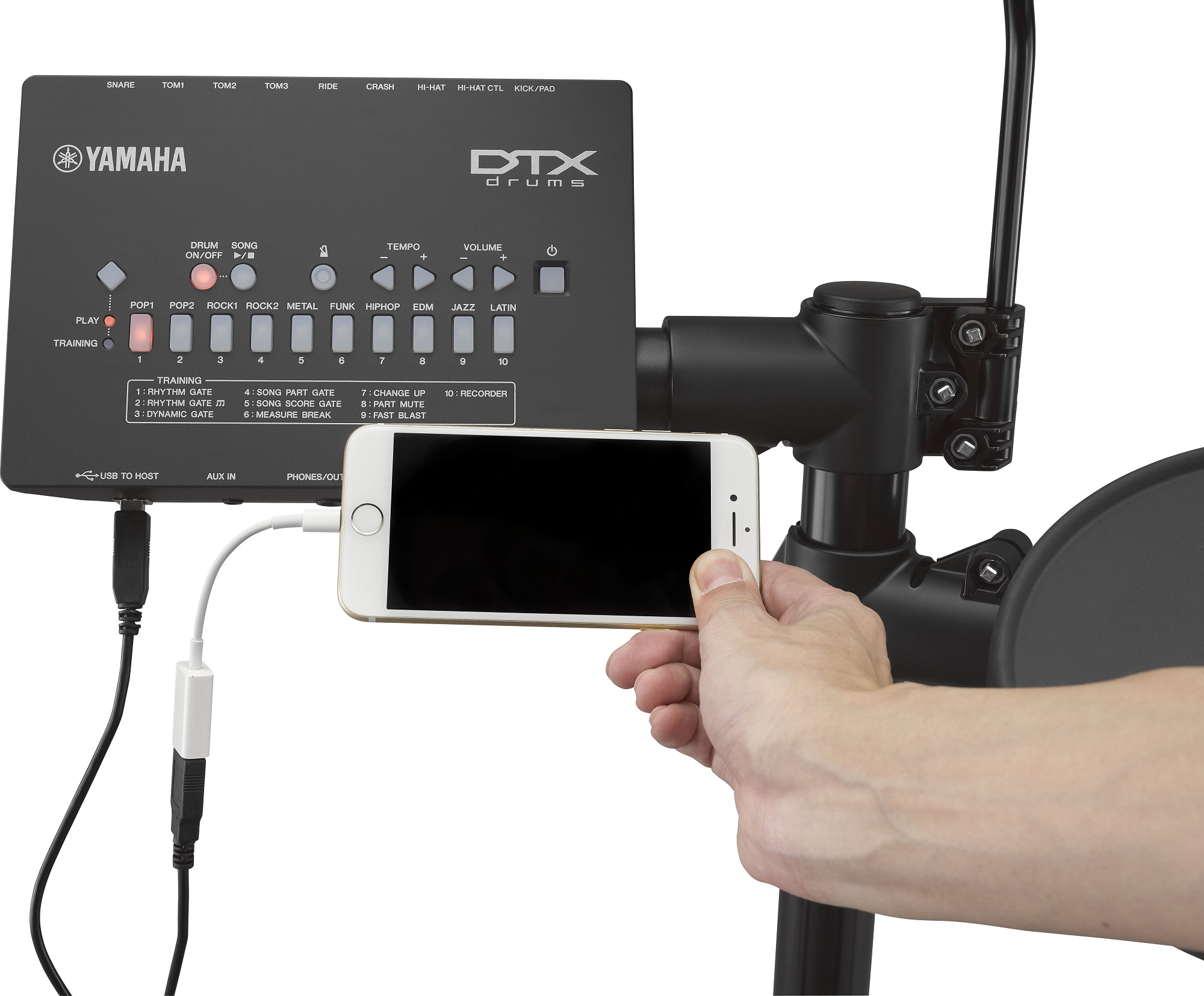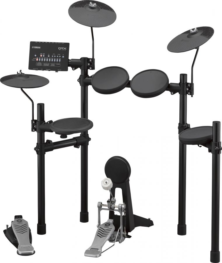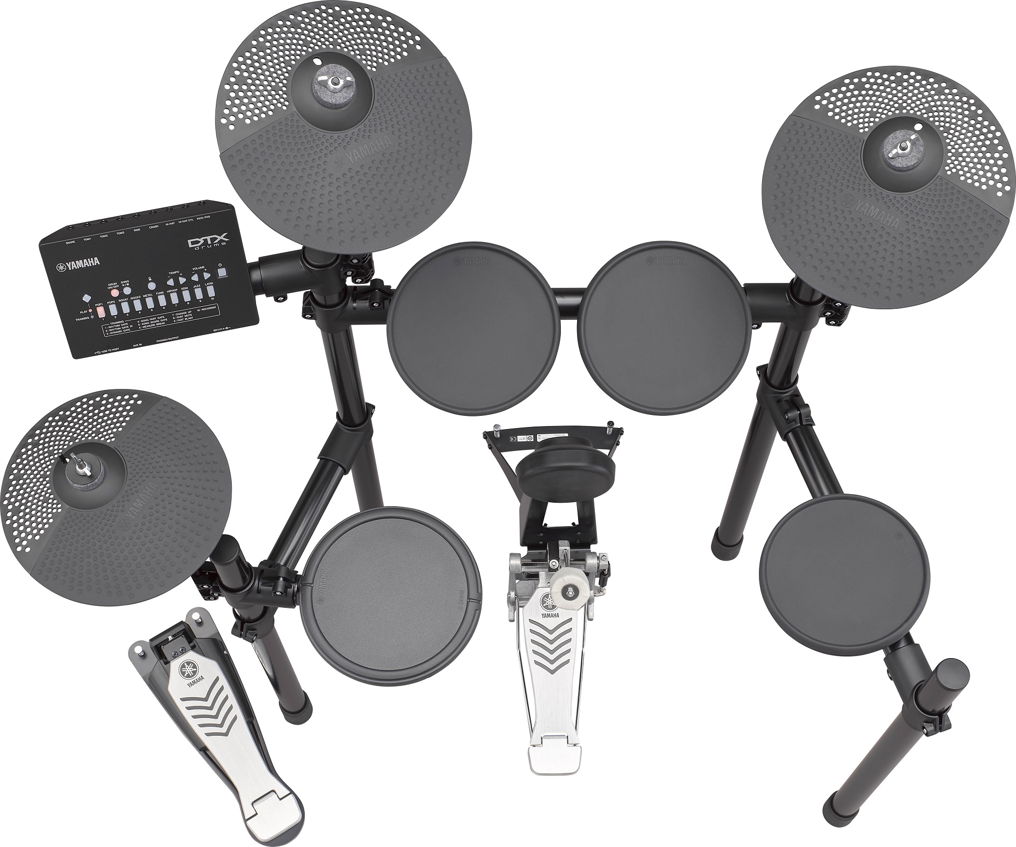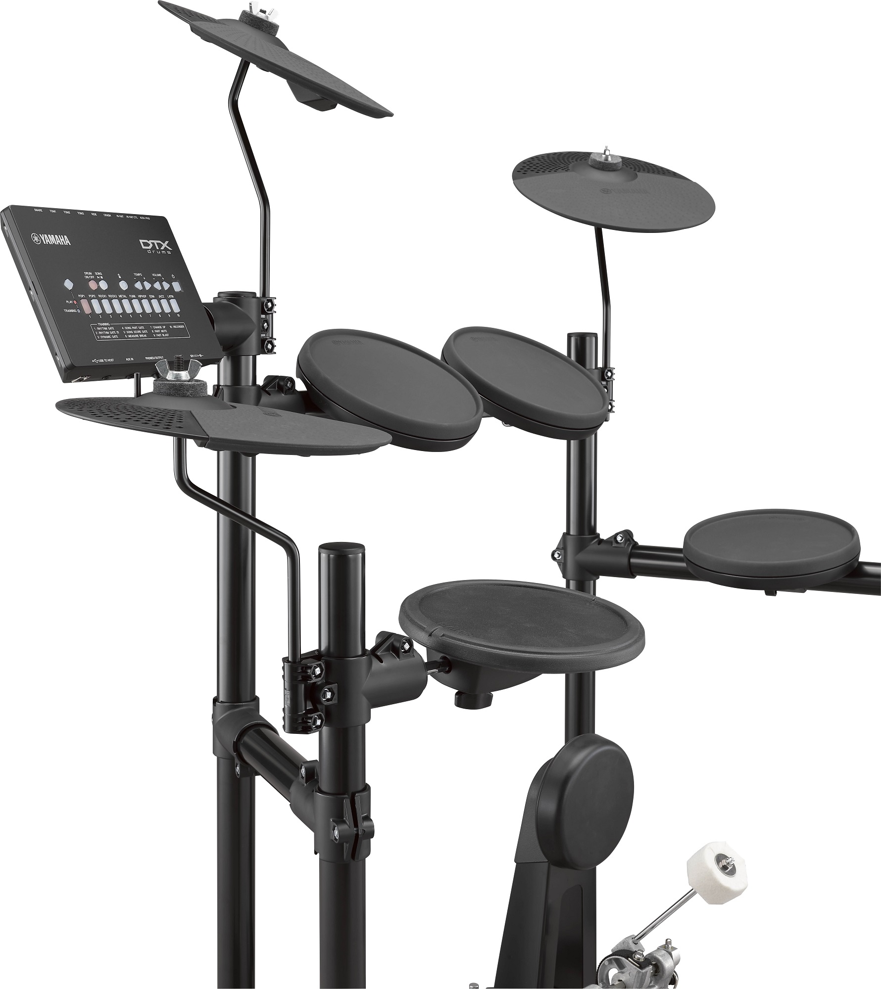Complete e-drum-set, DTX402 module, rack-system, max. polyphony 64, 287 drumsounds, 128 keyboard voices, USB-TO-HOST, AUX IN, 1x 3-zone-snarepad, 3x tompads, 3 x cymbalpad, 1x HH65, 1x KP65, 1x footpedal, 10 drumkits, 10 songs, 10 trainingsfunct.