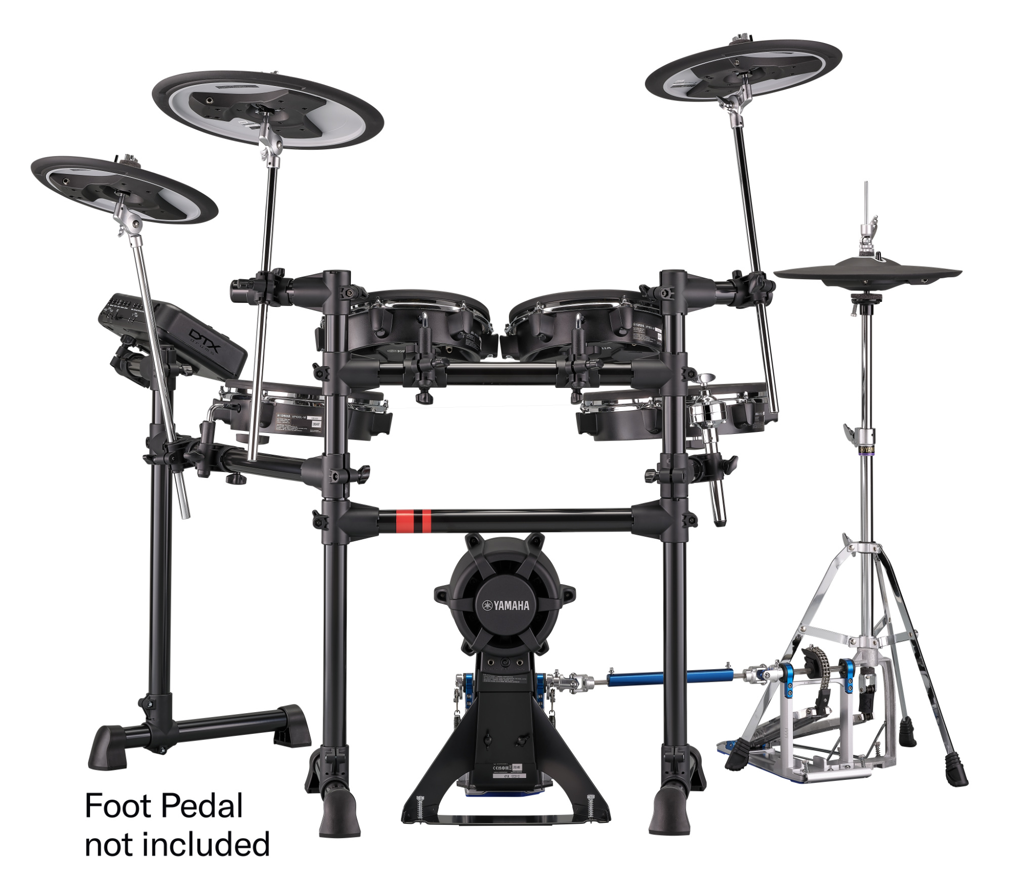 - Inkluderer to PCY135 crash pads, én PCY155 ride pad (med posisjonssensing) og en RHH135 hi-hat pad med fullt hi-hat-stativ.
