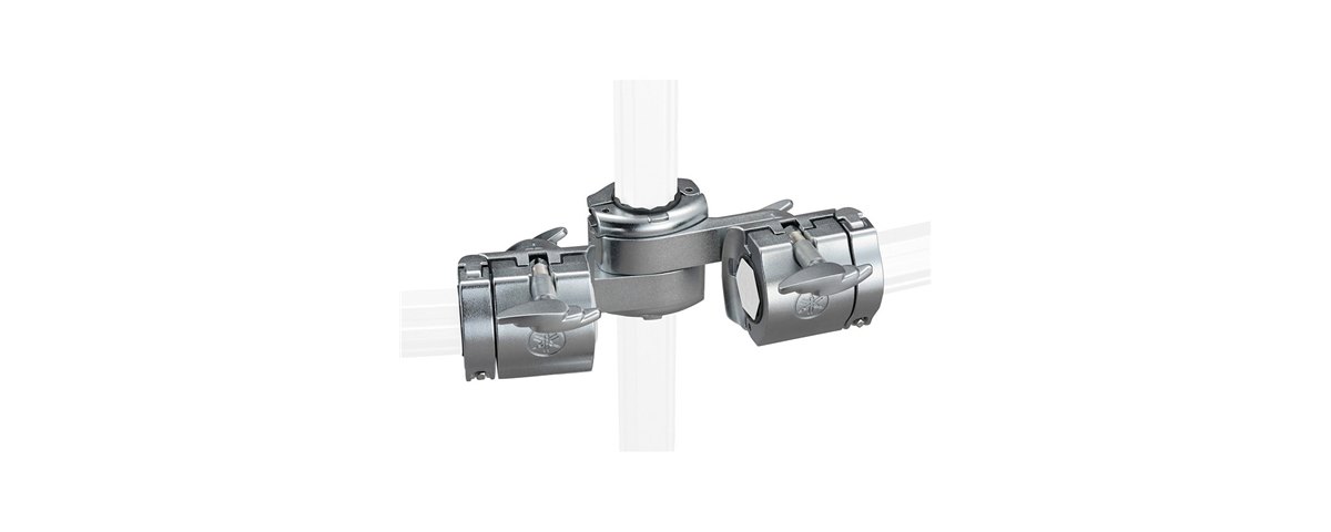 The double bass is used to horizontally set two tubes at the same height -as in a double-bass configuration, Settings at various angles are possible when used with the clamp gear joint.