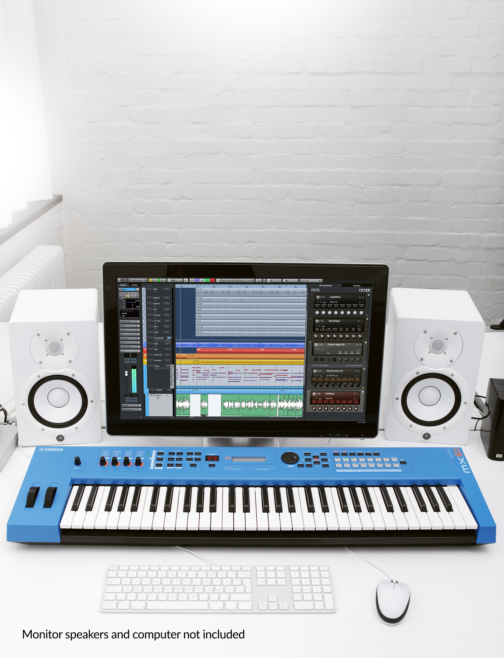Music Production Synthesizer, 61 keys, over 1000 Motif sounds, 16-Part multi timbral, 128-note polyphony, USB Audio/MIDI interfacing, including Cubase AI, available colours: black, blue