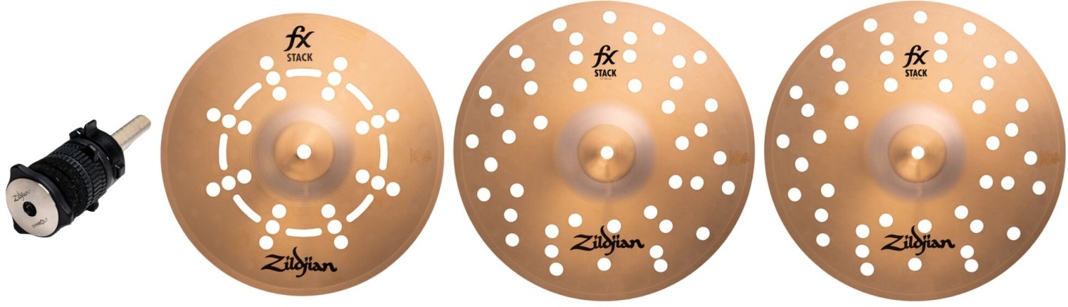 Zildjian FX Stack består av tre cymbaler hvor to er i samme størrelse og den tredje er noe mindre. Dette gir flere ulike kombinasjonsmuligheter for spennende lyder. Du kan plassere den mindre cymbalen over de større, mellom dem eller under, og skape helt ulike effekter med din FX Stack.