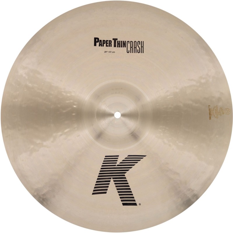 Zildjian K Paper Thin Crash cymbaler er et godt eksempel på hvordan Zildjian plukker ut høydepunkter fra selskapets nå mer enn 400 år lange historie. En historie preget av utvikling og innovasjon med motivasjon til å tilby produkter som leverer med velbehag det trommeslagere etterspør og ønsker, uavhengig av spill og musikalsk stil. Inspirasjonen til denne nye serien er hentet fra 50-tallet da Zildjian begynte å produsere svært tynne crash-cymbaler. Så med et øre til bakken og et blikk i bakspeilet ble K Zildjian Paper Thin Crash Series skapt for å dekke etterspørselen fra trommeslagere over hele verden. Med ny teknologi har Zildjians utviklingsteam designet en serie crash som kombinerer egenskapene til tynne cymbaler med egenskapene til cymbaler i større størrelser, som alle er samlet i den nå mer legendariske K-Zildjian-serien.K Zildjian Paper Thin Crashes er tilgjengelig i størrelsene 18", 19", 20", 21" og 22".