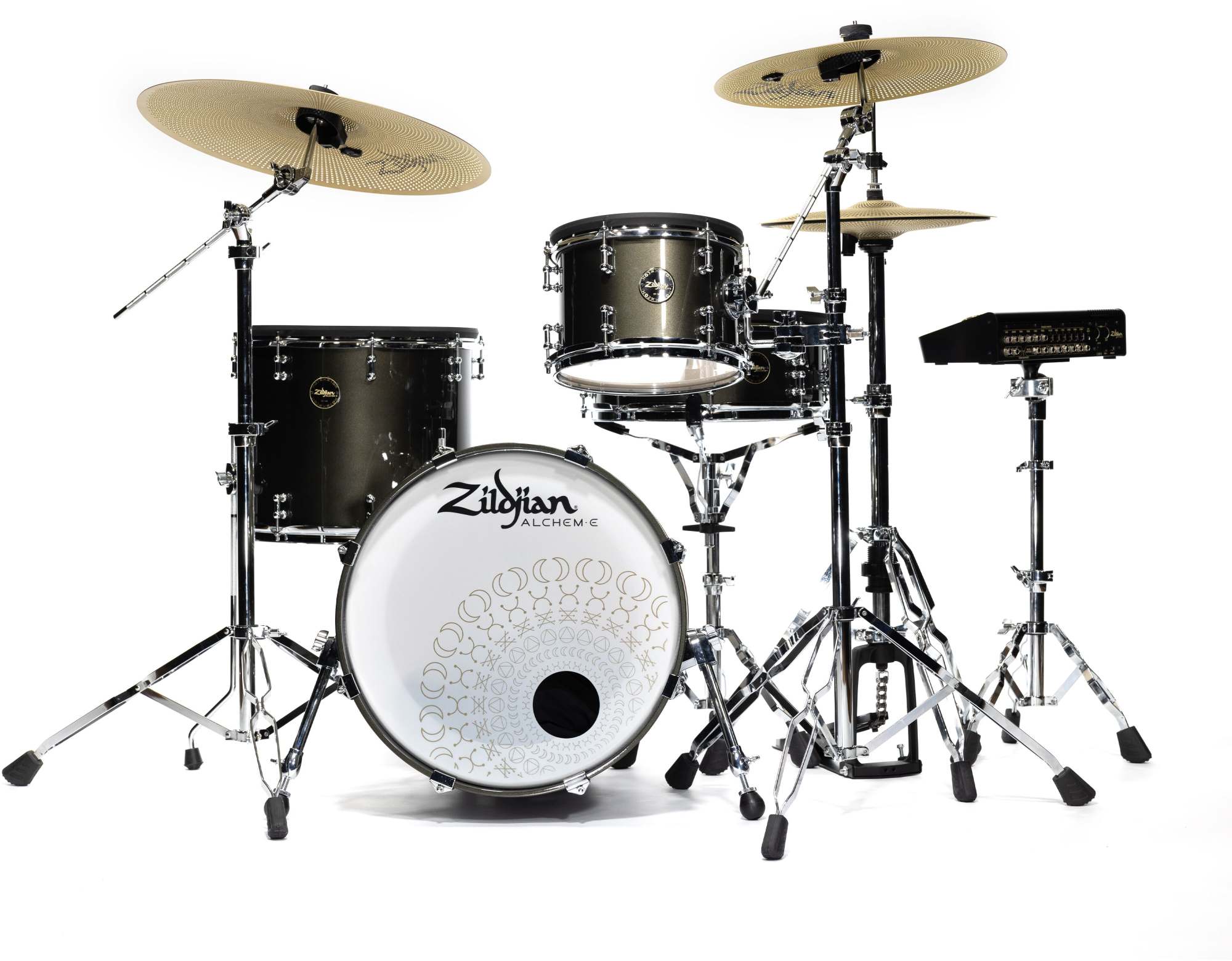 Zildjian introduserer det HELT NYE utvalget av Zildjian ALCHEM-E Series elektroniske trommesett. Zildjian satte seg fore å skape den mest realistiske, autentiske, oppslukende spilleopplevelsen med et komplett utvalg elektroniske hybridsett, fra våre mer kompakte Bronze EX, til flaggskipet ALCHEM-E Gold EX, hvert sett viser de revolusjonerende Zildjian E-FAMILY cymbalene og den funksjonsfylte Zildjian E-VAULT (ZEV1) trommemodulen. Zildjian ALCHEM-E Series elektroniske trommesett bruker bransjens mest responsive triggerkonfigurasjon, slik at du kan spille med uovertruffene nyanser og realisme. Enten du er en ambisiøs trommeslager som ønsker å øke opplevelsen din eller en erfaren proff som ønsker det ultimate innen autentisitet, eller hvor som helst i mellom, har utvalget av Zildjian ALCHEM-E Series-sett deg dekket.