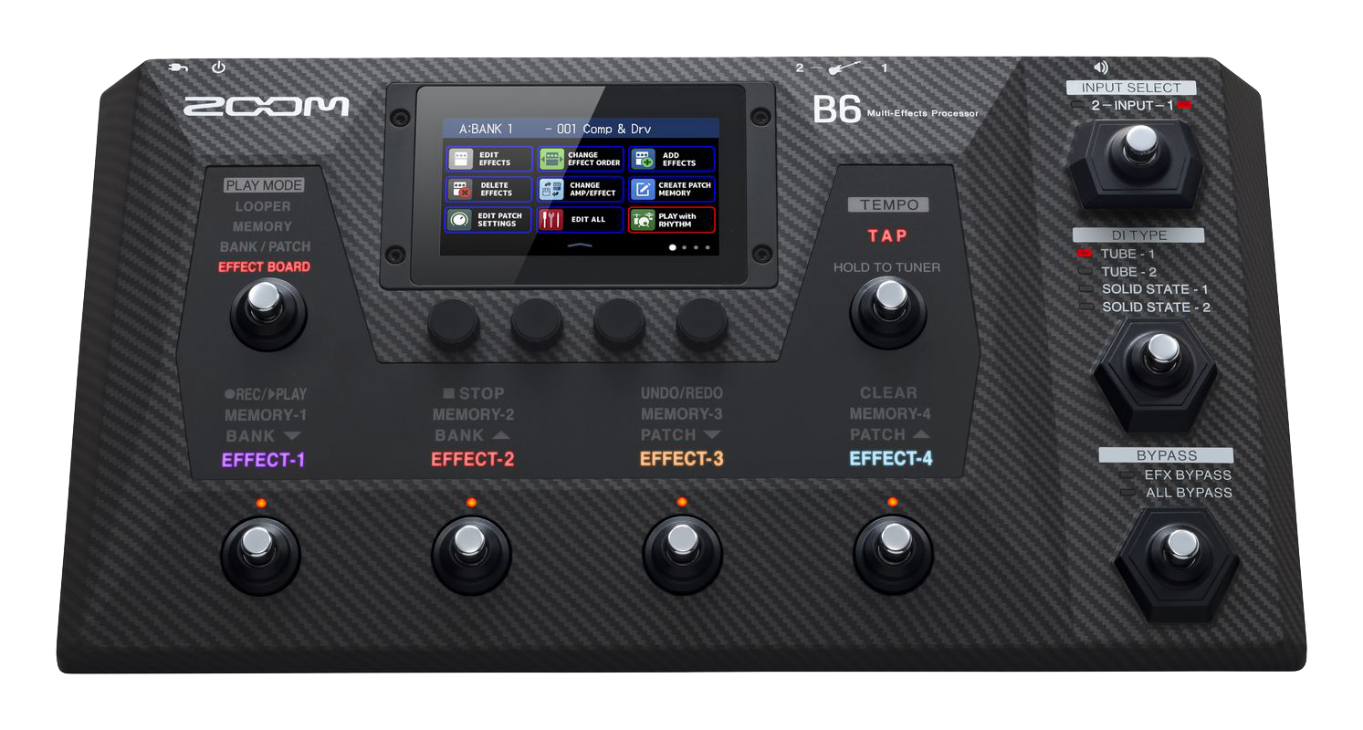 Zoom B6 er en avansert multieffektprosessor utviklet spesielt for bassister som ønsker full kontroll over tone, effekter og lydkvalitet. Med fire DI-modeller, kabinettsimuleringer og innebygd lydkort gir den et profesjonelt verktøy både til øving, studio og scene.